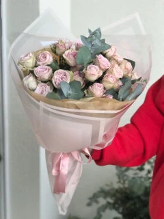 Букет "Нежный Шепот" - это волшебное сочетание роз, обрамленных свежей зеленью, спрятанные в тихой и изысканной упаковке. Этот букет направлен на передачу самых искренних чувств: нежности, любви и заботы. Изящные розы создают романтическую атмосферу, распуская свои нежные лепестки, словно призывая к прикосновению. Зелень, используемая в декоре, добавляет свежести и естественности, создавая ощущение летнего сада. Букет "Нежный Шепот" - это выражение вашей нежности и заботы, который подарит радость и улыбку вашим близким.